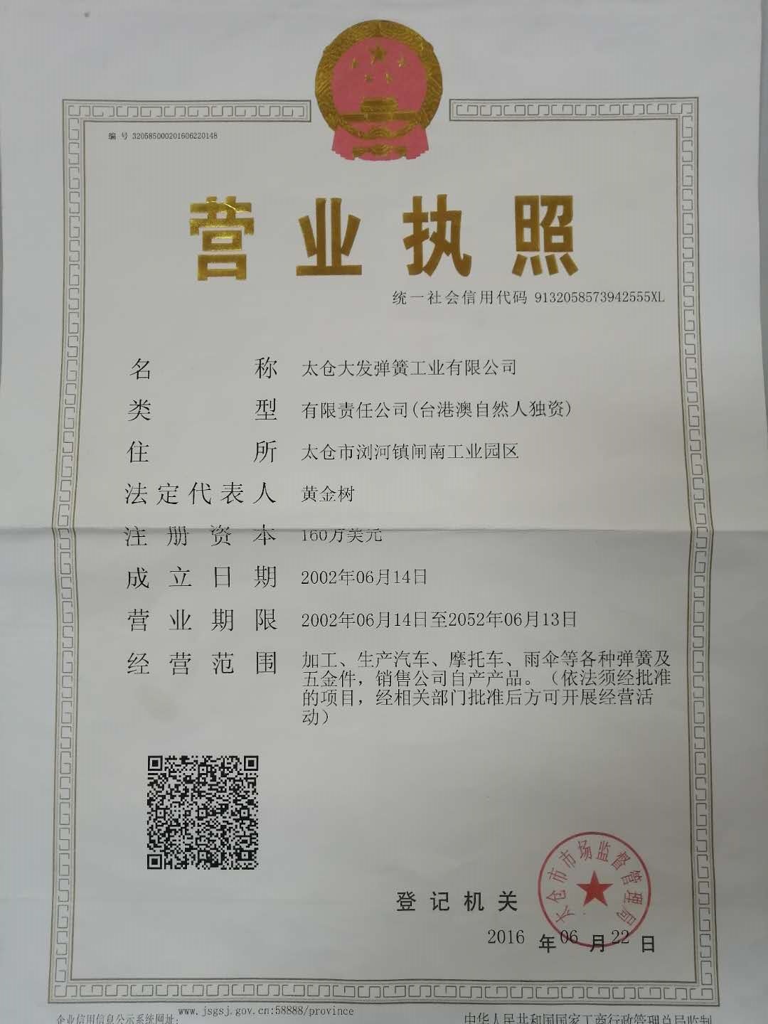 太倉(cāng)大發(fā)彈簧工業(yè)有限公司由黃金樹(shù)先生于1967年始創(chuàng)于臺(tái)灣,是一個(gè)集雨傘、電子、五金機(jī)械、自行車(chē)、摩托車(chē)、汽車(chē)等的彈簧配件生產(chǎn)、加工、輔助設(shè)計(jì)服務(wù)的綜合性企業(yè),其中1990年創(chuàng)辦的廈門(mén)大發(fā)彈簧公司、2000年創(chuàng)辦的深圳大發(fā)彈簧公司、2002年創(chuàng)辦的太倉(cāng)大發(fā)彈簧公司均位于經(jīng)濟(jì)發(fā)展地區(qū),地理位置佳。我們憑借在彈簧制造業(yè)的多年豐富知識(shí)與技術(shù),并著眼于以客戶為導(dǎo)向,秉持“以人為本,以質(zhì)為先,以客為主,持續(xù)創(chuàng)新”的經(jīng)營(yíng)理念,強(qiáng)化競(jìng)爭(zhēng)優(yōu)勢(shì)。公司導(dǎo)入ISO9001: 2000質(zhì)量管理體系,執(zhí)行ISO14000:2000管理方式,倡導(dǎo)安全、高質(zhì)量、高素質(zhì)的生產(chǎn)。